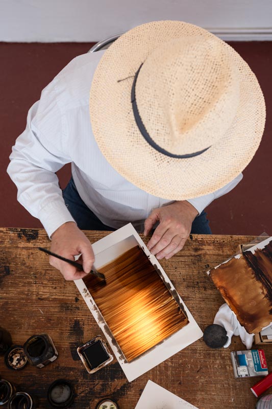 „Mein Weg zur Heliographie begann nach Jahren als Laborant und analoger Fotograf. Die digitale Fotografie entwickelte sich rasant, aber ich fand sie nicht mehr so spannend und zu schnelllebig für meinen Geschmack. Bei meiner Suche nach einer neuen Herausforderung stieß ich auf die faszinierende Welt der Heliographie. Die Idee, eine der ältesten fotografischen Techniken zu erforschen und zu praktizieren, reizte mich enorm. Das war der Wendepunkt meines beruflichen Werdegangs.“